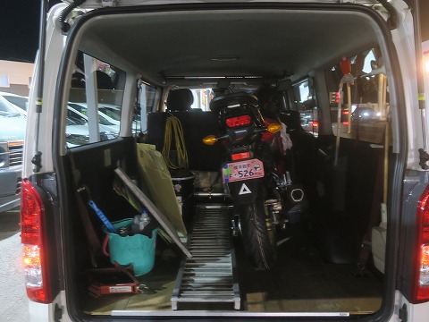 16:37 まずはリヤタイヤから GROMはハイエースに積んできました。 さっそく、ハイエースからGROMを降ろして、タイヤ交換の準備。 GSX-RやCBRの様にレーシングスタンドが無いので、サイドスタンド。 なので、両方一辺にタイヤを外すことは出来ないので、片側ずつ。 まずは、リヤタイヤからやっつけちゃいましょう |