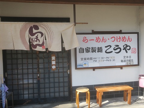 11:30 今日のお昼は 今日は2週間ぶり(?)に伊豆ツーリングに来ています。 お昼にやってきたのは伊豆急行の南伊東駅近くにある”らーめん こうや”。 駐車場は店の裏らしいですが、ちっちゃいGROMは店の前に駐めちゃいます。 先々週は、あてにしていたお店が閉まっていて、あやうく昼食難民になるところでしたので、今回は調べてきました。 営業開始時刻の11:30ジャストに到着です。 それでは、早速入店しましょう。 |