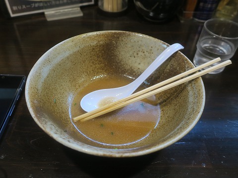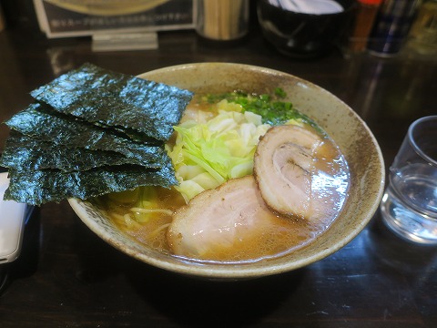 11:46 いただきます。 それでは、「いただきます。」 麺はやや太めかな。 縮れも少なめです。 麺はコシがあって、つるつるでいい感じですね。 スープは豚骨系にバックに魚介がある感じで、横浜の家系ほどの濃さはなくて、食べやすい感じで美味しいです。 基本、茶色い食べ物は美味しい。(笑) 開店直後から混んでいるのも納得します。 |