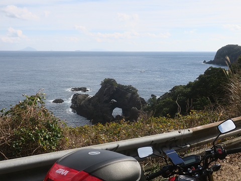 13:35 伊豆白浜で 昼食を食べてから走ること1時間半。 コーヒーが飲みたくなったので、国道沿いにあるセブンイレブンで休憩します。 場所は伊豆白浜。 |