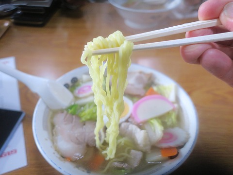 11:55 注文は 駐車場もかなりの台数のクルマが駐まっていましたので、店内に入るとほぼ満席でした。 相席で待つことなく座ることができました。 さて、注文は・・・・。 レバニラなどの定食物は混んでいるので時間がかかるって、店のおばちゃんが言ってました。 けど、自分が食べたいのは汁もの。 目の前に座っているおじさん(たぶん同年代)が食べているのが美味しそう。 聞いたら「五目そば」だって。 注文はこれで決定! (笑) |