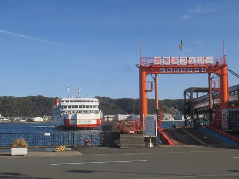 8:50 入港してきた なんて思っていると、浜金谷からのフェリーが入港してきました。 これがノーマルカラーの東京湾フェリー ちなみに、ペリーが乗ってきた黒船と東京湾フェリーの全長は78mでほぼ同じくらいらしいです。 (見たことないから知らんけど) 当時はこの大きさで太平洋を渡ってきたんでだね。 |
