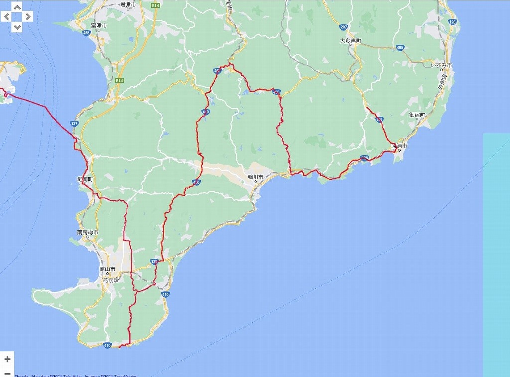 | 往路の道程:勝浦 〜 鴨川 〜 亀山 〜 野島崎灯台 〜 浜金谷 〜東京湾フェリー 〜 久里浜 〜 自宅(横須賀) : 173.50 km | |