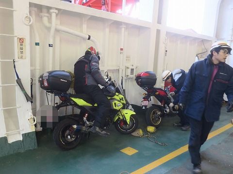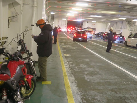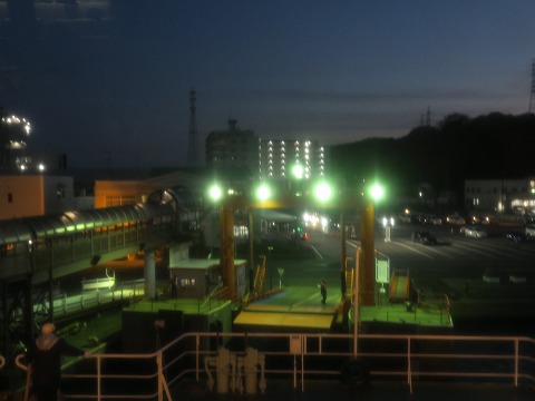 18:03 下船 着岸したら下船です。 下船はクルマ(四輪)から。 なので、ノンビリと車両甲板に降りて、準備をします。 |