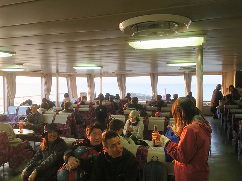 17:17 結構混んでる フェリーに乗れたら、こっちのもんです。(笑) 自動的に横須賀まで連れて行ってくれますから。 車両デッキから客室に上がると、結構混み合っていますね。 6〜7割の乗船率って感じかな。 空いてる席を探して、のんびりしましょう。 |
