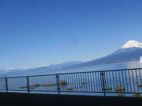 11:03 富士山と南アルプス 道の駅函南から裏道を抜けて静岡県道17号沼津土肥線(ぬまづ とい せん)に入り駿河湾に沿って走ります。 先ほどから右手には富士山。 その左手には冠雪した南アルプス。 ここまでハッキリ見えることも少ないです。 景色を楽しみながら、バイクを走らせます。 |