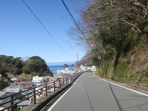 12:27 国道136号線を そして国道136号線をそれて西伊豆町の田子漁港へ下りて行きます。 この辺りの道は、旧道なんだろうね。 今は山側にトンネルを掘ってバイパス化されていますけど、30年〜40年前は全部こんな感じだったかなぁ。 その頃は伊豆半島の海側をグルッと回ると、クネクネの細い道ばかりで500km以上あったんですよね。 なんとなく、懐かしく感じます。 |