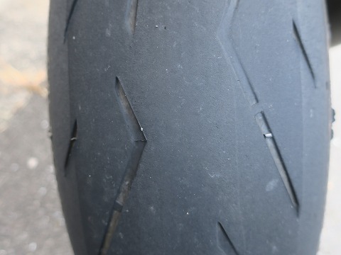 17:19 おまけ ツーリング後のリヤタイヤ。 前回の西伊豆ツーリングの時に、近場のツーリングあと1回だね。と書きましたが、きれいにスリップマークが出て、タイヤが終わりましたね。 |