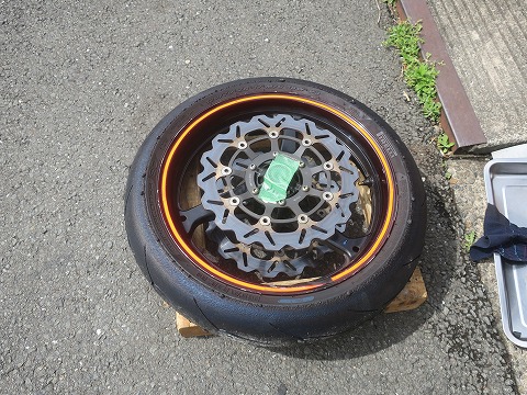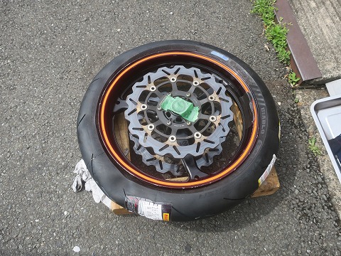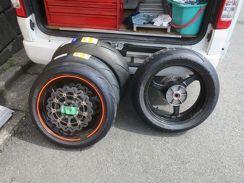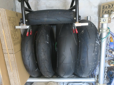 10:09 古いタイヤは スペアホイールに付けている古いタイヤの DIABLO SUPERCORSA V3を外して、新しいタイヤを取り付けます。 ガレージからタイヤを引っ張り出してきて、作業開始です。 |