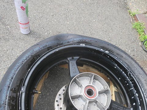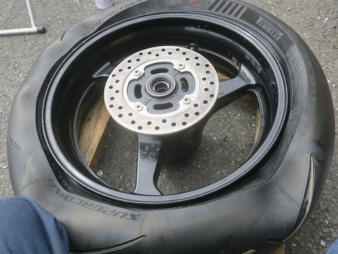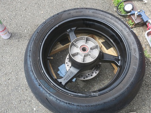 10:19 古いタイヤは 古いタイヤ、外れました。 古いタイヤは取っておいて、貧乏臭くエビスの走行会の時に使うことにしましょう。(笑) |