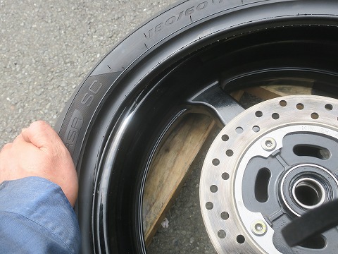11:14 ビートを上げる前は タイヤ入りました。 エアーを入れる前のタイヤってこんな感じ。 これからエアーを入れて、ビートを上げます。 |