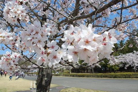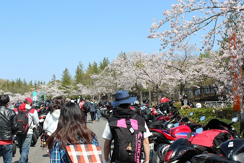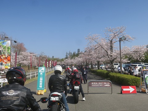 9:48 花見を それでは、まずはメインゲートに向けて歩いて行きましょう。 自分がバイクを駐めた場所って、メインゲートからちょっと距離があったよなぁ。 モテギでは、桜がちょうど満開で、花見をしながら向かいます。 |