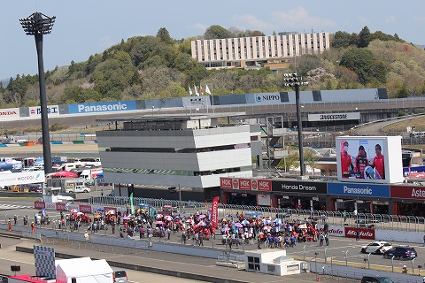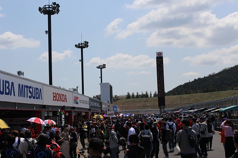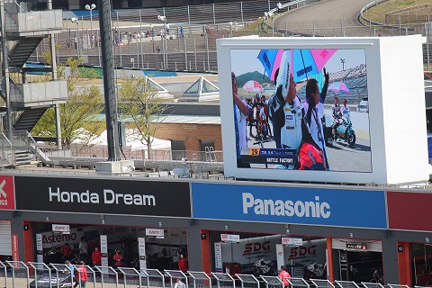 10:11 大型ディスプレイで グランドスタンドだと大型ディスプレイを見ることが出来ます。 下にPanasonicの看板があるから、アストロビジョンかな。 この映像はユーチューブでも流れているので、自宅でも見ることも出来るんですけどね。 やっぱり現地で見ている方が臨場感が違います。 今日行われるレースは全部で4カテゴリー。 最初は今進行しているJ-GP3。 この後、ピットウォークを挟んで ST600。 メインレースの JSB そして、最後にST1000クラスの決勝になります。 |