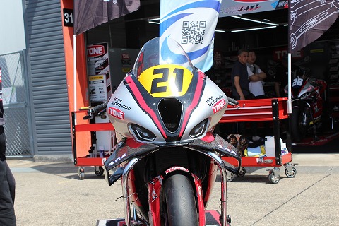 11:30 デカいウィング 息抜きしたところで、バイク。 TONE RTからJSB1000クラスに参戦しているBMWのM1000RR。 外観はこれでほぼ純正。 今の市販車はこんなにデカいウィングが付いているんだね。 |