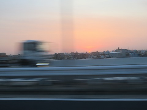 5:04 葛飾(かつしか)で日の出 首都高湾岸線を北上して、葛西JCTから首都高中央環状線(C2)へ。 葛飾ハープ橋近くまで来る頃には、東の空から日が昇ってきました。 4月も中旬、日の出時刻が早くなりましたね。 |