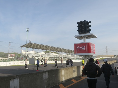 8:21 定点観察 走行の準備がひと通り終わったころには、朝一番の走行が8時から始まってチケット売り場も空いてくるので、チケットを買いに行きます。 途中、いつもの場所からコントロールタワーをバックに定点撮影。 今日はほとんど雲もなくて、走行日和ですね。 |