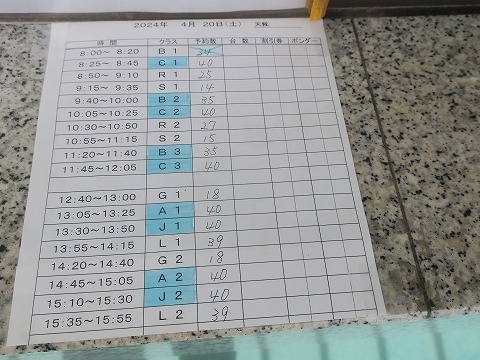 8:23 チケットを買いに チケット売り場にやってきました。 カウンターに置いてあるのは、各クラス毎の予約数。 満席のクラスは青く塗られています。 A、B、CとJクラスは一杯なんですね。 一番早いRクラスは、まだ余裕があるんですね。 Rクラスは1分3秒以下で走れるライダーなので、普段はやっぱり限られるのかな。 自分も以前は、願わくばRクラスに。 なんて思って一生懸命走っていましたが、今となっては年々タイムが遅くなるのに抗うのが精一杯です。(笑) |