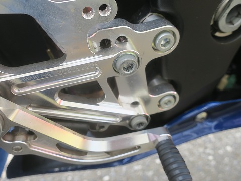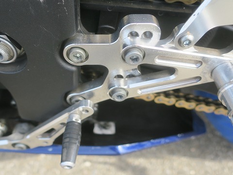 8:38 ステップの位置を 先週末、CBRのタイヤを準備しているときに、ステップの位置を変えました。 低いほうの位置にセットしなおしました。 高いほうだと、ステップの踏み変えがちょっと大変なんです。 4箇月のブランクがあっての走り初めなので、踏み変えが楽な低いほうにしてみました。 ただ、低いほうだとブーツの先を路面に擦るもんで、バイクを寝かせられなくなっちゃうですよね。 右側のステップの位置を変えるのは簡単。 ステップのプレートを止めてあるボルト2本外して、位置を変えたらボルトを締め付けるだけです。 |