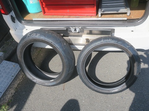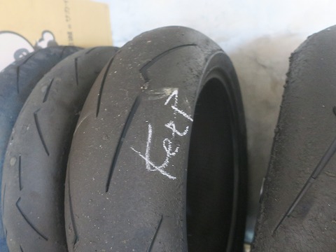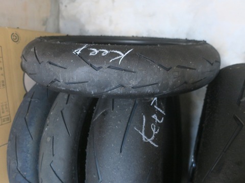 14:15 タイヤの入れ替え GW前半、2日目の午前中はGSX-Rをいじってました。 午後からはCBRです。 タイトルにもあるとおり、CBRのタイヤ交換します。 って、この記事を読んでくれている人なら、「またタイヤ交換ですか?」ですが・・・・・。 「またなんです。」(笑) 今、CBR用のタイヤのストックは、PIRELLI のDIABLO SPERSORSAの @. V3 のユーズドで終わりかけ A V4 のユーズドでこれも終わりかけ B V4の前回20分だけ走ったほぼ新品。 の3セット。 GW明けにエビスの走行会があるので、このときに@A.の終わりかけのタイヤを使い切ってしまおうと考えています。 |