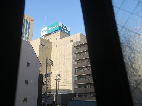 ベットから起きて、少ししか開かない窓から外を見ると晴れ。