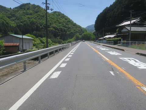 13:43 県道32号線は 右折して県道32号線に入り、今度は北上します。 県道32号線は、この写真ではセンターラインはありませんが、この先ほとんどの区間でセンターラインが現れます。 県道は祖谷渓に沿って走る、曲がりの浅い中低速コーナが連続する路線です。 バイクだと、ヒラリヒラリと走ることが出来るので、走っていて気持ちのいい路線です。 クルマも多くはありません。 |