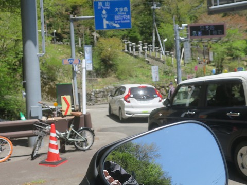 12:53 国道439号線との交差点に 国道438号線の南下を続け、剣山登山リフトの発着場がある三叉路で酷道ヨサクの愛称で知られる国道439号線に突き当りました。 この交差点を左折すると、国道438号線と国道439号線の重複区間となり徳島市へと向かいます。 自分はこの交差点を右折して、大歩危方面へと進みます。 この交差点付近は渋滞がひどいです。 ゴールデンウィークと言うこともあってか剣山にハイキングに来たクルマで駐車場は一杯、元々狭い道路で離合できるような場所を見つけて駐車場代わりにクルマを駐めて山歩きに行ってしまったであろうクルマがこの交差点を中心に1kmくらい続いています。 そのため、離合場所を失ったクルマ同士がにっちもさっちも行かず渋滞になっています。 バイクなので、脇を走らせてもらいますが、それでもトロトロ運転です。(+_+) |