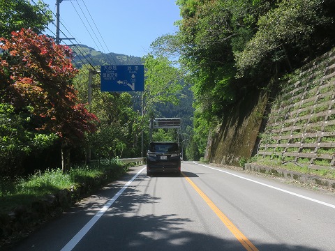 11:29 山間部へと 瀬戸内海側から四国の内陸部へと進みます。 国道438号線は程なく山間部へと入っていきます。 四国は山深いです。 GWですが交通量は少なくて、ここまで遠出してきた かいがありますね。 |