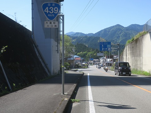 14:58 西走を続ける ガソリンを入れたら、国道439号線の西走を続けます。 国道32号線から分岐した後の国道439号線は”酷道”の雰囲気はまったくありません。 全線センターラインがある片側1車線の対面通行の国道です。 概ね吉野川に沿って緩いコーナーを直線が結んだような線形で、オートバイを流すことができます。 この区間はそれなりの交通量がありました。 |