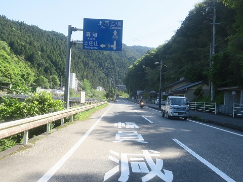 15:05 県道16号線で 県道16号線に入り高知市方面を目指し南下します。 大歩危から国道23号線だけで高知市までいくんじゃ面白くないので、ツーリングマップル見て探したルートです。 四国の山の中を走る路線は、先ほどの国道438号や国道439号線の様に酷道だったり険道がありますからね。 自分は別に酷道や険道好きじゃありません。 空いている道を自分のペースで走りたいので、探して走ってみたら酷道・険道だったりするだけです。(笑) |