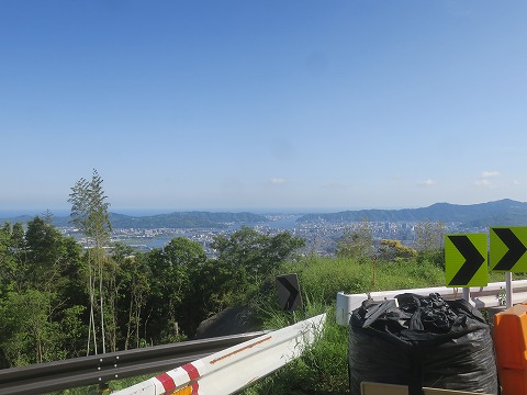 15:33 眼下に高知市 県道16号線を南下し、視界が開けると眼下に高知市の市街地、そしてその向こうには太平洋が目に飛び込んできました。 ちょっと霞んでいますが、景色イイです。 気持ちいいですね。 |