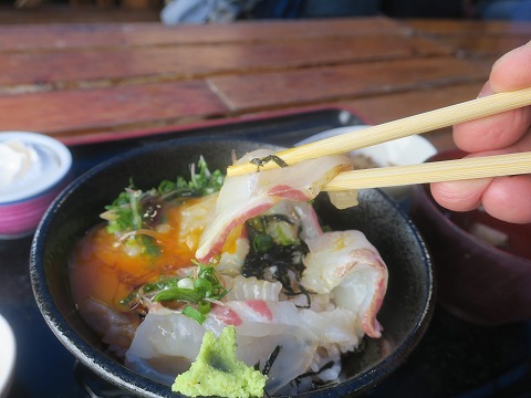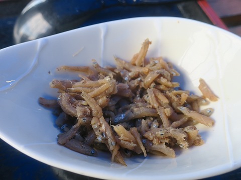 12:16 ゴボウ? 付き合わせの、”ゴボウの煮つけ”か何かと思ったら・・・・・。 よく見ると、めだまがある。 シラスでした。 シラスをショウガを加えて煮込んだものでした。 「これも美味しい。」 入口の券売機にも、生シラス丼があったんですけどね。 地元の横須賀や湘南も生シラス丼は名物のひとつです。 ので、わざわざ愛媛まで来て、食べるものでもないですよね。 でも、このシラス食べられたので、よかった。 |