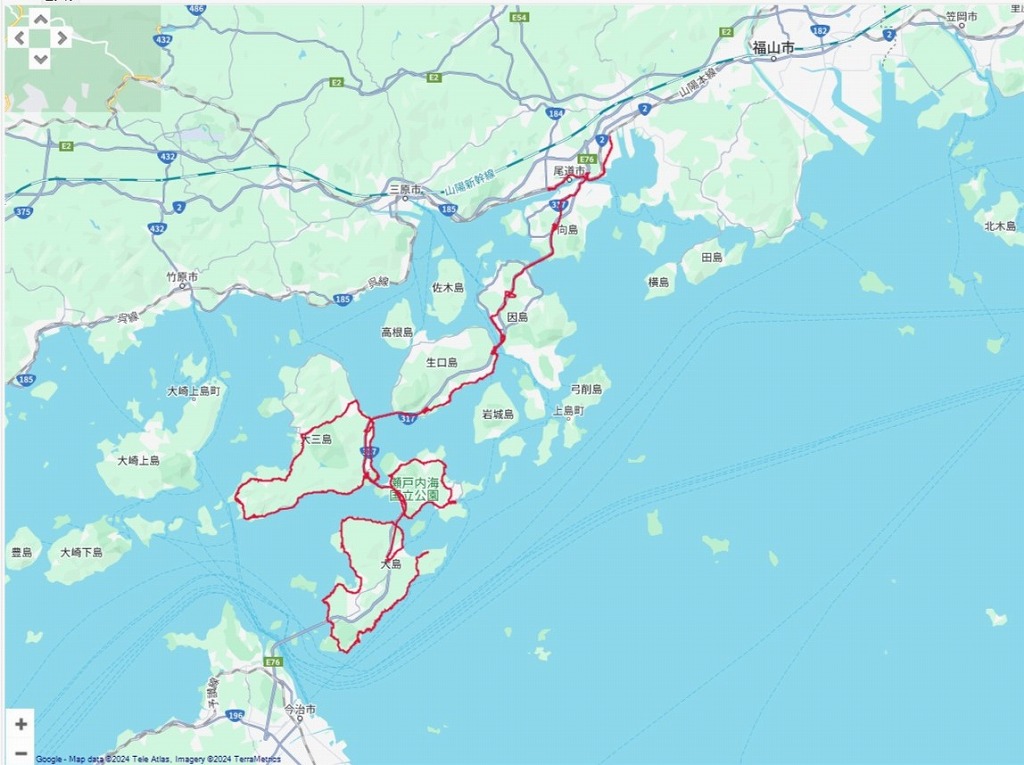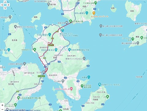 | 午後の道程:しまなみ海道:大島 〜 伯方島 〜 大三島 〜 生口島 〜 因島 〜 向島 〜 尾道 :150.09km | |
