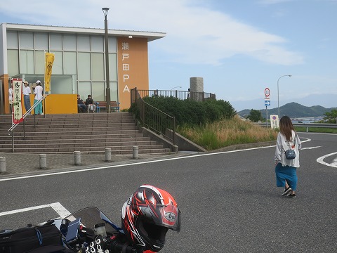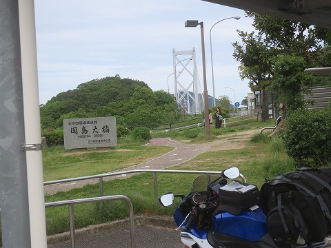 16:02 大浜PAに 因島北インターは、2コマ上の地図にもある通り、比較的内陸部にあります。 しまなみ海道に入りしばらく走ると、因島を出る前にある大浜PAに停まります。 向島と接続する因島大橋が見えますが、バイクと一緒に写真に収めるには、ちと場所が微妙でしたね。(笑) 先に進みます。 |