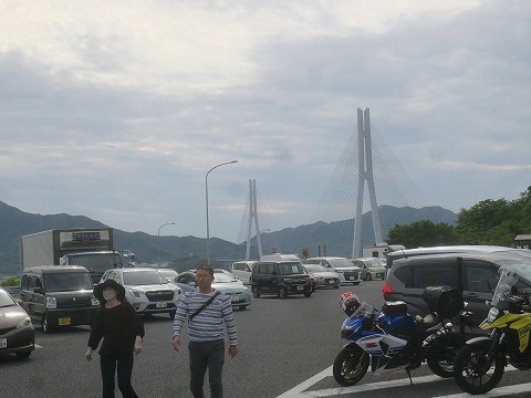 15:25 パーキングから パーキングからは、今渡ってきた多々羅大橋が見えます。 多々羅大橋の名前は、今渡ってきたところが多々羅海峡と言う名前を由来にしているらしいです。 |