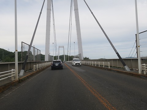 16:20 尾道大橋は 最後、向島から本土には、一般道の方の尾道大橋で渡ります。 尾道大橋も以前は有料道路だったみたいですが、料金徴収期間が満了したので2013年から無料解放されているそうです。 無料でよかったです。(笑) この尾道大橋は、向島と本土の間200mほどの幅の尾道水道を渡っており、橋長386m、橋塔の間隔は200mを越えており、供用開始当時、国内最長の斜張橋だったそうです。 供用開始は1968年と結構古い。 自分より5歳若いけどね。 尾道大橋は一般道なので、原付は走ることができます。 歩道も確保はされていますが、写真を見ての通り、歩道と言うよりも斜張橋のケーブルを支えるベース的な感じで、かなり狭い、かなり歩き難そうです。 これだと、自転車は歩道は走れないですね。 かと言って、車道は交通量が多く、幅員も十分広いとは言えません。 「自転車は、渡船を使いましょう。」と推奨しているらしいです。 |