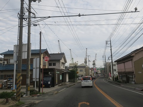 16:43 尾道のクレーン ガソリンを入れたら、国道2号線を西走します。 左手には、尾道水道の港のクレーンが見えています。 |