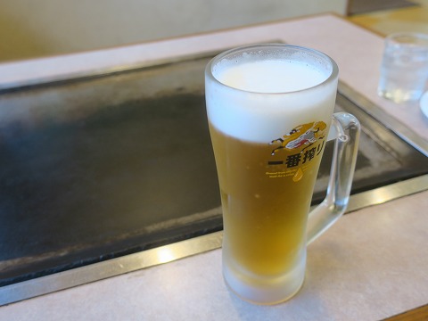 18:06 大きなテーブル席に 無事、入店できましたよ。 店内に入ると、お客さんの入りは5割りくらい。 個人的には、調理している鉄板があるカウンターがよかったんですが、カウンターは調理専用に使っているようで、お客さんは座れないみたいでした。 通されたのは5人座れる小上がりの席。 この大きなテーブルを一人で使うのって、気がはばかられるんですよね。 (気が小さいもんで)(笑) |