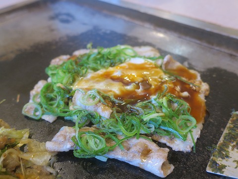 18:31 とんぺい焼きを 肉玉だけで十分なのですが、食い意地が張っているもんで、追加の注文。 お願いしたのは、”とんぺい焼き”。 メニューでとんぺい焼きを見つけたときに、懐かしいなぁ~。思って注文。 とんぺい焼きは、2016年のGWに大阪を訪れたときに食べたのが初めて。 それ以来、人生2食目。 前回食べたのとちょっと違うイメージでした。 とん平焼きは、色々なバラエティーがあるらしいです。 |