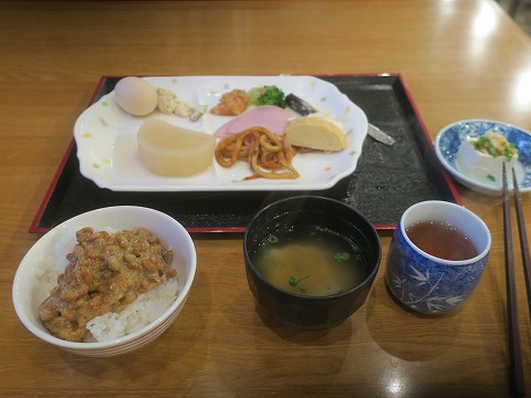 6:39 西に行くと 朝食はブッフェスタイル。 お上品なチョイスで。 納豆好きなもので納豆があったのが嬉しい。 以前は西(西日本)に行くと、納豆はほとんど置いてませんでしたからね。 (って、いつの時代の話をしているんだか)(笑) |