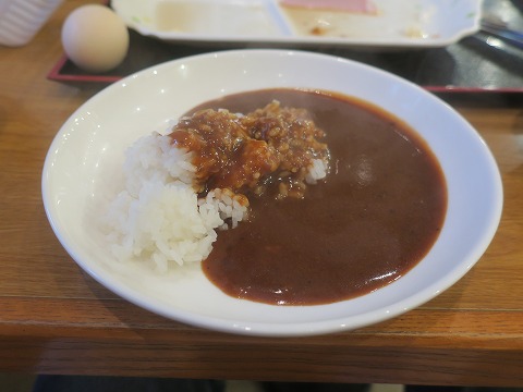 6:45 セカンド テイクは ファースト テイクがお上品だった理由はこれ。 ひと通り食べたら、セカンド テイクへ。 朝カレー。 ゆで卵を付けてね。 |