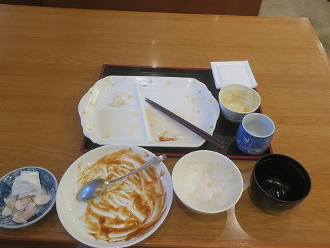 6:50 完食 完食。 これで、お昼まで買い食いしたくなることも無いでしょう。 「ごちそうさまでした。」 それでは、部屋に戻って出発の準備をします。 |
