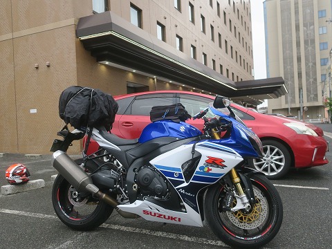 7:19 出発の準備 リヤシートに荷物を積んだら、いつ降り出してもいい様にレインカバー。 それでは、今日もツーリングを続けます。 (つづく) |