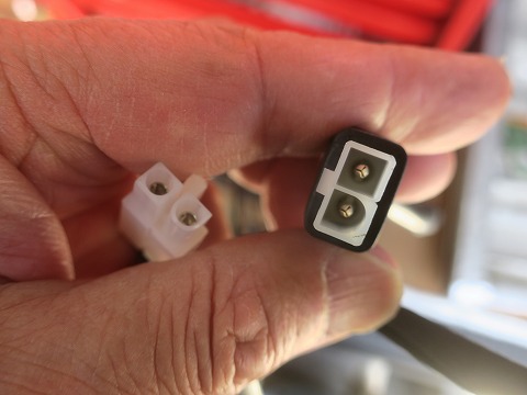 14:21 コネクタを確認 さっそく開梱して、充電器とのコネクタがちゃんと合っているかを確認。 大丈夫ですね。 実は、GW前にコネクタを買ったんですが、充電器と同じコネクタが付いていて使えなかったのだ。(失敗)(笑) |