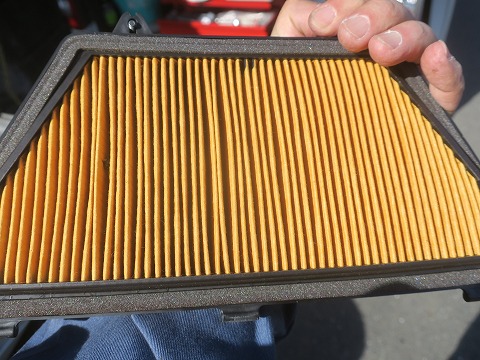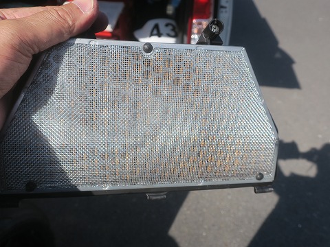 15:08 エアークリーナを エアークリーナ外れました。 小石とかが入ってきて、紙のエアークリーナ突き破ってエンジンに入らない様、金属製の網が付いてます。 その裏は、薄っすら見えるけど、パンチングメタル。 自分が使っているエアークリーナは街乗りの市販車用でホンダの純正です。 HRCが出しているレース用のエアークリーナもありますが、そっちは吸い込みの抵抗がなるべく少なくなる様にクリーナーが薄め。 細かいゴミとかある程度吸い込んでエンジンが痛むので、メインテナンスを小まめにする本気の人向け。(笑) |