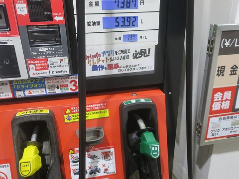 22:57 給油1回だけ 浦和本線料金所からは首都高速に接続して、湾岸線で八景島近くの幸浦ICで一般道へ。 国道16号線で横須賀市に入る手前でハイエースに経由を給油。 53.92リットル入りました。 |