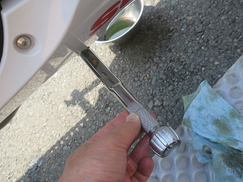 9:21 トルクレンチを使って 大体オイルが抜けたところで、ドレンボルトを取り付けます。 トルクレンチを使って、締めすぎないように、規定のトルクで締め付け。 |