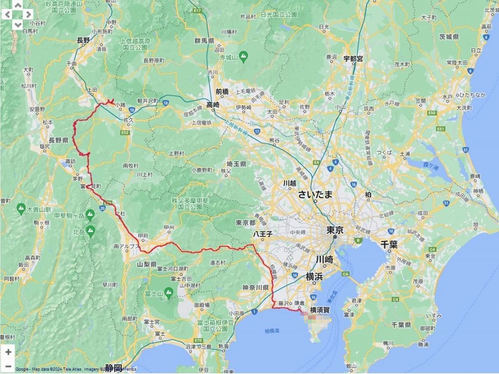 午前の道程:横須賀(自宅) 〜 茅ヶ崎海岸 IC 〜 諏訪 IC 〜 白樺湖 〜 ビーナスライン 〜 美ヶ原高原 〜 東御市: 318.30km
