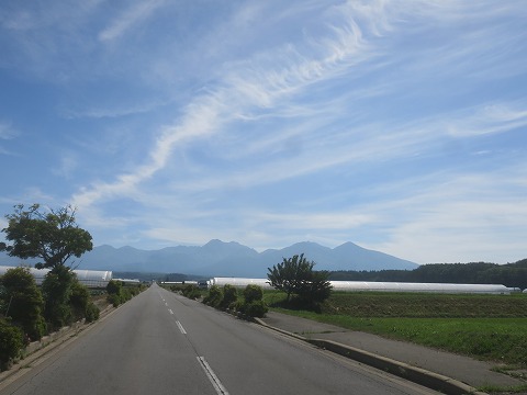 両側に畑が広がる直線路で、その名前の通り目の前には八ヶ岳連邦がズームインしてきます。