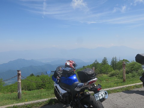 バイクを駐めた場所からは、目の前にはたぶん浅間山とか上信越の山々が広がっています。