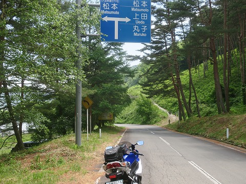 美ヶ原高原から県道464号線を下ること12kmあまりT字路に突き当りました。